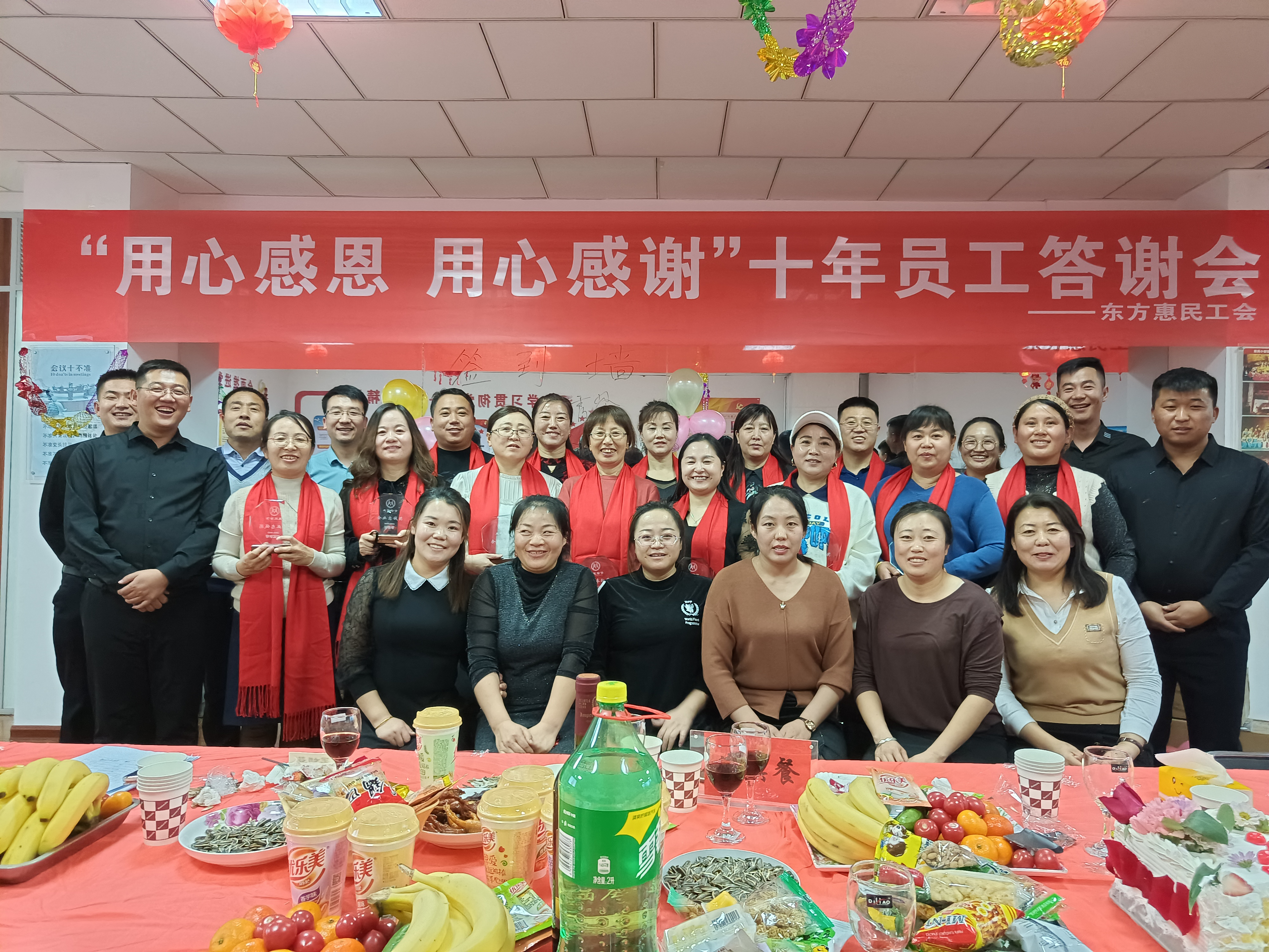為(wei)了感謝(xie)惠民公司(si)(si)老員(yuan)工(gong)(gong)的辛勤付出,11月26日(ri)下(xia)午,惠民信貸黨支部及東方(fang)惠民公司(si)(si)工(gong)(gong)會(hui)特(te)別開展以(yi)(yi)“用(yong)心(xin)感恩(en) 用(yong)心(xin)感謝(xie)”為(wei)主題的主題黨日(ri)活動暨入職十周年以(yi)(yi)上員(yuan)工(gong)(gong)特(te)別答謝(xie)會(hui)。