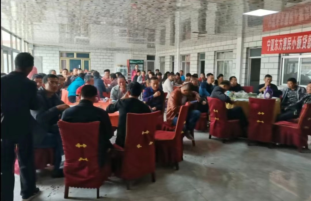 去年九月底,正是秋高氣爽、風輕云淡的舒適時節。馬兒莊的一戶農家大院里,時蔬鮮肉在鐵鍋大勺中翻滾,熊熊火焰的熱力逼出食材四溢的香氣,七八十個人圍坐在張張圓桌上,拿著酒杯,夾起飯菜,笑語歡聲浸潤在這人間煙火之中。此番熱鬧景象可不是誰家的喜事酒席,而是鹽池分公司推廣員史桂香張羅的一場農服推介會。