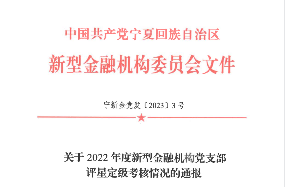 中國共產黨寧夏回族自治區新型金融機構發布《關于2022年度新型金融機構黨支部評星定級考核情況的通報》: