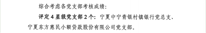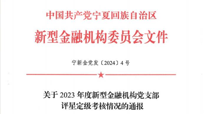 中國共產黨寧夏回族自治區新型金融機構發布《關于2023年度新型金融機構黨支部評星定級考核情況的通報》: