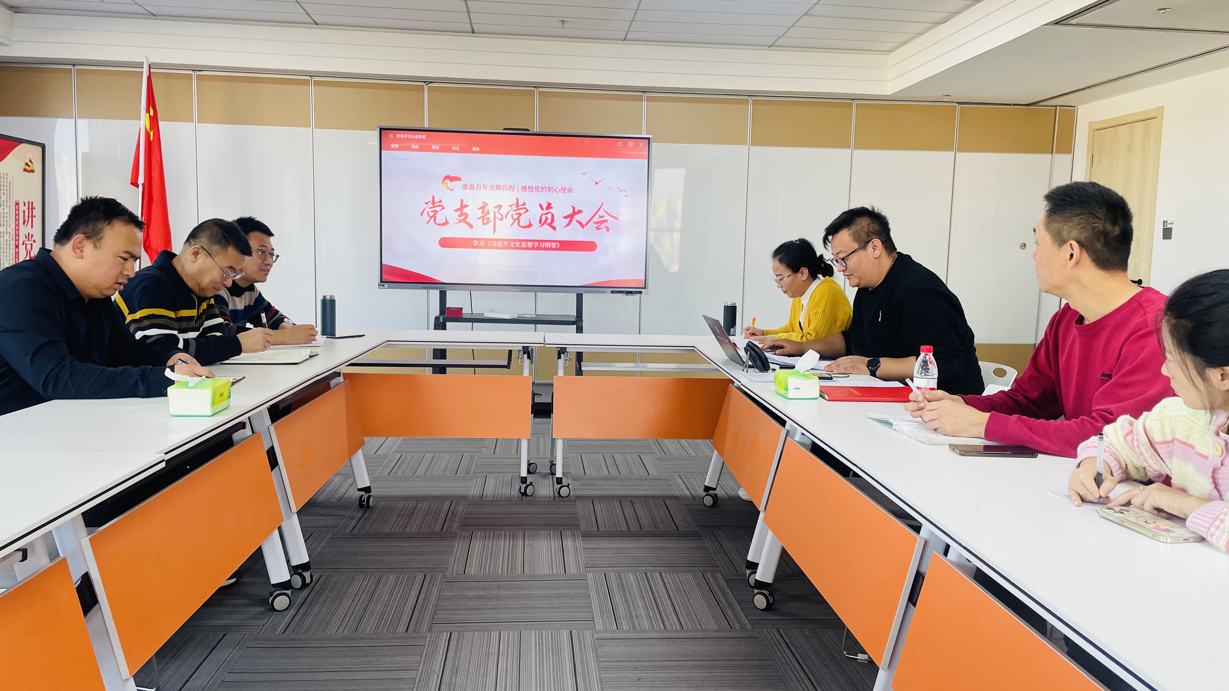 會議由黨支部副書記呂海濤主持,全體黨員通過線上線下相結合的方式參加了此次學習大會。支部副書記呂海濤強調了學習《綱要》的重要性和緊迫性,指出《綱要》是廣大黨員、干部、群眾深入學習領會習近平文化思想的權威輔助讀物,對于建設文化強國、推動惠民企業文化發展具有重大意義。
