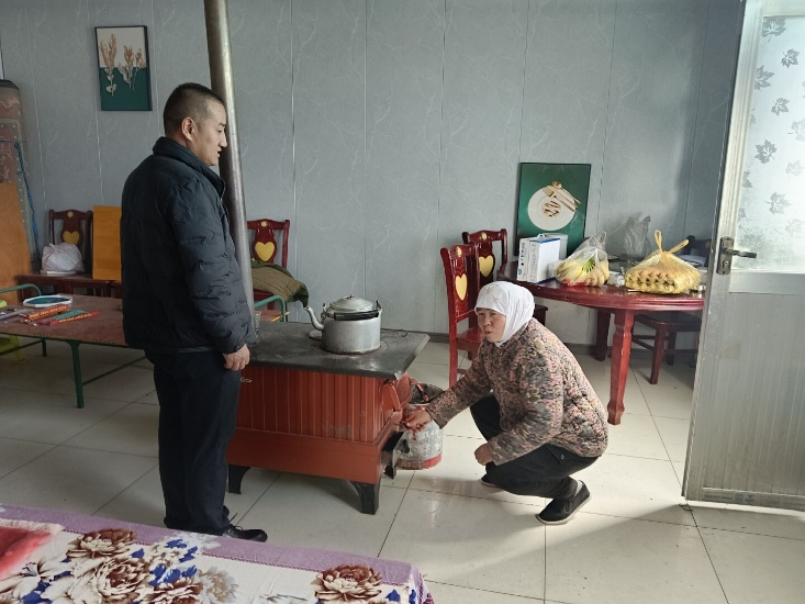 當我們來到楊阿姨家,走進屋內,滿眼過去都是悲傷的痕跡。當我們表明來意,楊阿姨先是一怔,隨即眼眶泛紅,慌忙中收拾著爐火,可能是擔心屋里太冷,慢待了我們。瞬間,我感覺屋內火爐變的很溫暖,屋外的陽光變得更溫暖。楊阿姨一直不停的重復在說:“這可把你們害著跑著來,家里也么個撒好招待的,我燒點水喝點茶,謝謝關心”。當了解她家里目前的情況,主任和我安慰她有啥困難提出來我們盡力去解決。為了不讓楊阿姨感到尷尬,我們提前結束了慰問。看似簡單的慰問,這代表著我們對她及家人的祝福,但是我們更希望楊阿姨提早走出困境,她未來的生活能更圓圓滿滿,