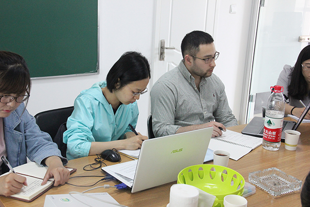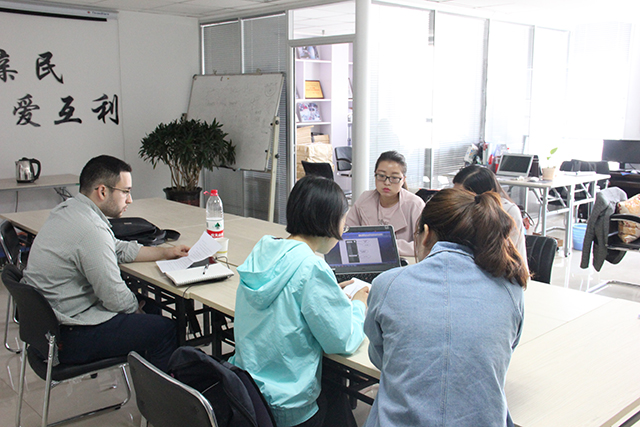 會議過后,沛豐(中國)電子化商務項目負責人徐凱及井凡與運營部的員工們就日清月結POS機刷卡還款業務規范進行了討論。