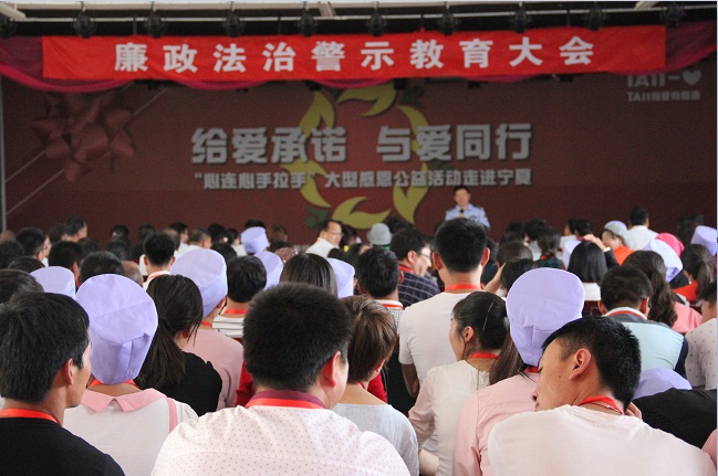 為進一步加強寧夏東方惠民小額貸款股份有限公司所有員工的思想教育,增加廉潔自律和防腐拒變能力,有效遏制和防范職務犯罪,5月19日,按照寧夏東方惠民公司2016年度培訓計劃,由行政人事部會同運營管理部、計劃財務部統一安排部署,寧夏東方惠民公司全體員工共164人赴寧夏銀川女子監獄,身臨其境的接受警示教育。