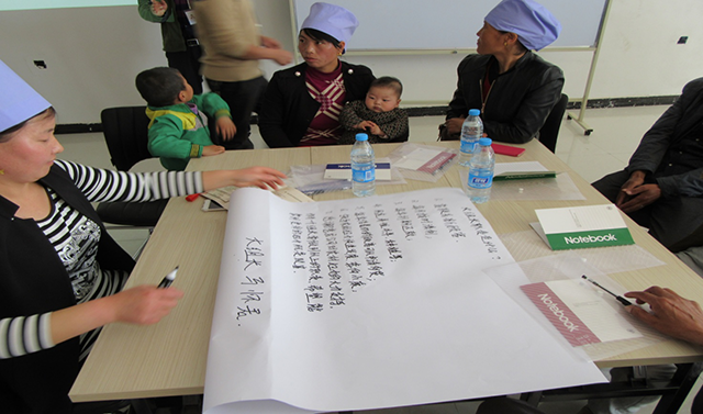 大組長培訓先由紅寺堡營業部袁才華主任致辭,并介紹東方惠民公司簡介及公司發展趨勢,之后由李仲元助理以參與式討論的方式向大組長培訓了大組長的職責、小組長的職責、聯保責任及相關規定、征信系統及村組相關規定等內容。