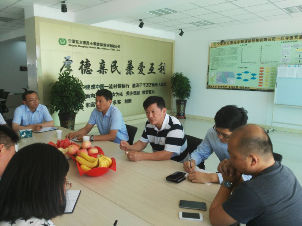 在紅寺堡營業部陳總和營業部的工作人員進行了短暫的座談,在座談會上先由陳總講述了與惠民結緣的故事。陳總指出,惠民公司做的是做小、做微的草根經濟,服務對象是銀行服務不到的人群,要了解客戶特征,關注市場行情,給客戶提供的不只是資金支持,還要為客戶提供有效的增值服務。拉美的陽光銀行就是從公益小貸→商業小貸→銀行發展歷程,陽光銀行真正做到了只改名稱不改初衷,是惠民公司很好的借鑒對象。
