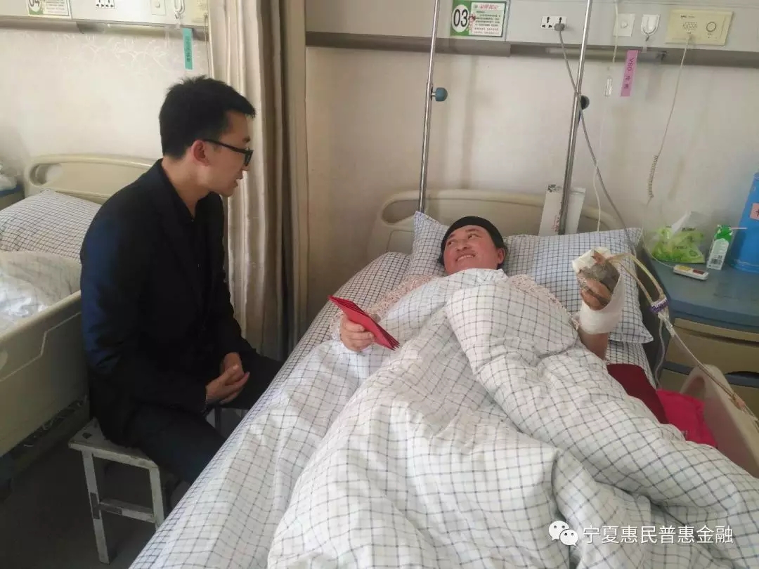 3月15日,自治區人民醫院急救中心,丁成花做完手指重接手術僅一周。當天,寧夏東方惠民小貸公司監事會主席張鵬把公司員工捐助的5065元善款交到丁成花手中。