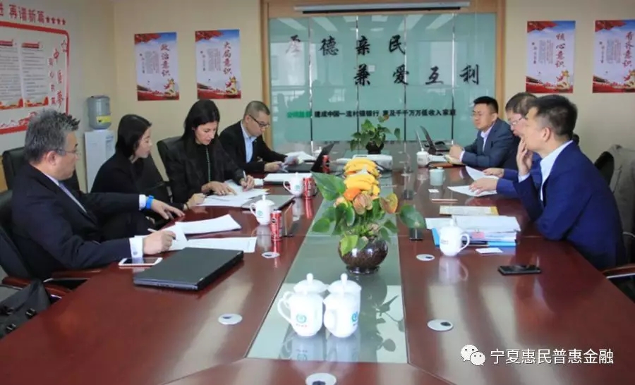 在寧(ning)期間, Dina一行走訪了(le)(le)自治區金融(rong)監督管(guan)理(li)局和國家開(kai)發銀(yin)行寧(ning)夏分(fen)行,與惠民(min)(min)公(gong)(gong)司管(guan)理(li)層進行了(le)(le)交流溝通,詳細了(le)(le)解了(le)(le)惠民(min)(min)公(gong)(gong)司的(de)經營(ying)模(mo)式和發展(zhan)戰略,走訪了(le)(le)原州、西吉、青銅(tong)峽等惠民(min)(min)公(gong)(gong)司的(de)分(fen)支機構和客戶代表,了(le)(le)解了(le)(le)惠民(min)(min)公(gong)(gong)司的(de)業務(wu)開(kai)展(zhan)情況,調研了(le)(le)客戶的(de)生(sheng)產生(sheng)活(huo)情況。