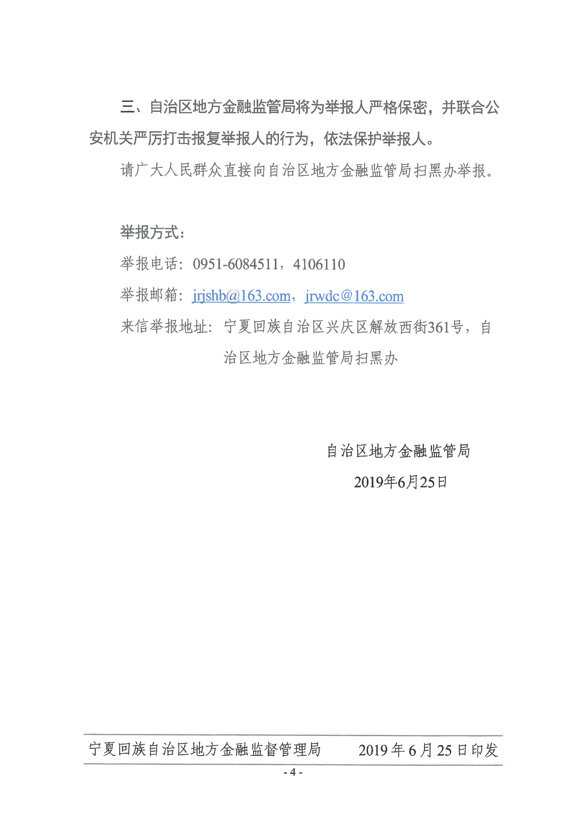 為深入貫(guan)徹落(luo)實中央和(he)自治區(qu)關于開(kai)展掃黑(hei)除(chu)(chu)惡專項斗(dou)爭的決策部署,全力推進地方金(jin)融領域掃黑(hei)除(chu)(chu)惡專項斗(dou)爭深入開(kai)展,歡迎廣大人民群眾和(he)社會各(ge)界積極舉報金(jin)融領域涉(she)黑(hei)涉(she)惡線索。