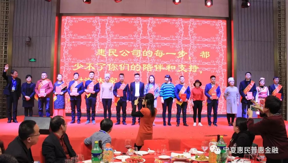 一元復始冬將去,萬象更新春又來。1月16日,寧夏東方惠民小額貸款股份有限公司舉辦“砥礪奮進、不忘初心”文藝晚會,慶祝中國小額信貸25年暨寧夏東方惠民小額貸款股份有限公司成立10周年。中國小貸聯盟、中國小貸協會、全國各地小貸行業代表、國家開發銀行寧夏分行等單位的領導和嘉賓、客戶代表、惠民公司全體員工共360余人共同觀看了惠民信貸員工表演的文藝節目。演出現場,隆重表彰了惠民信貸2018年度最佳“后盾獎”。