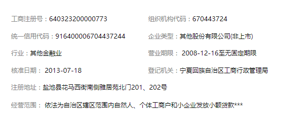 分公司地址:寧夏鹽池縣花馬池西街雅居苑北門口201/202(寧夏東方惠民小額貸款股份有限公司)